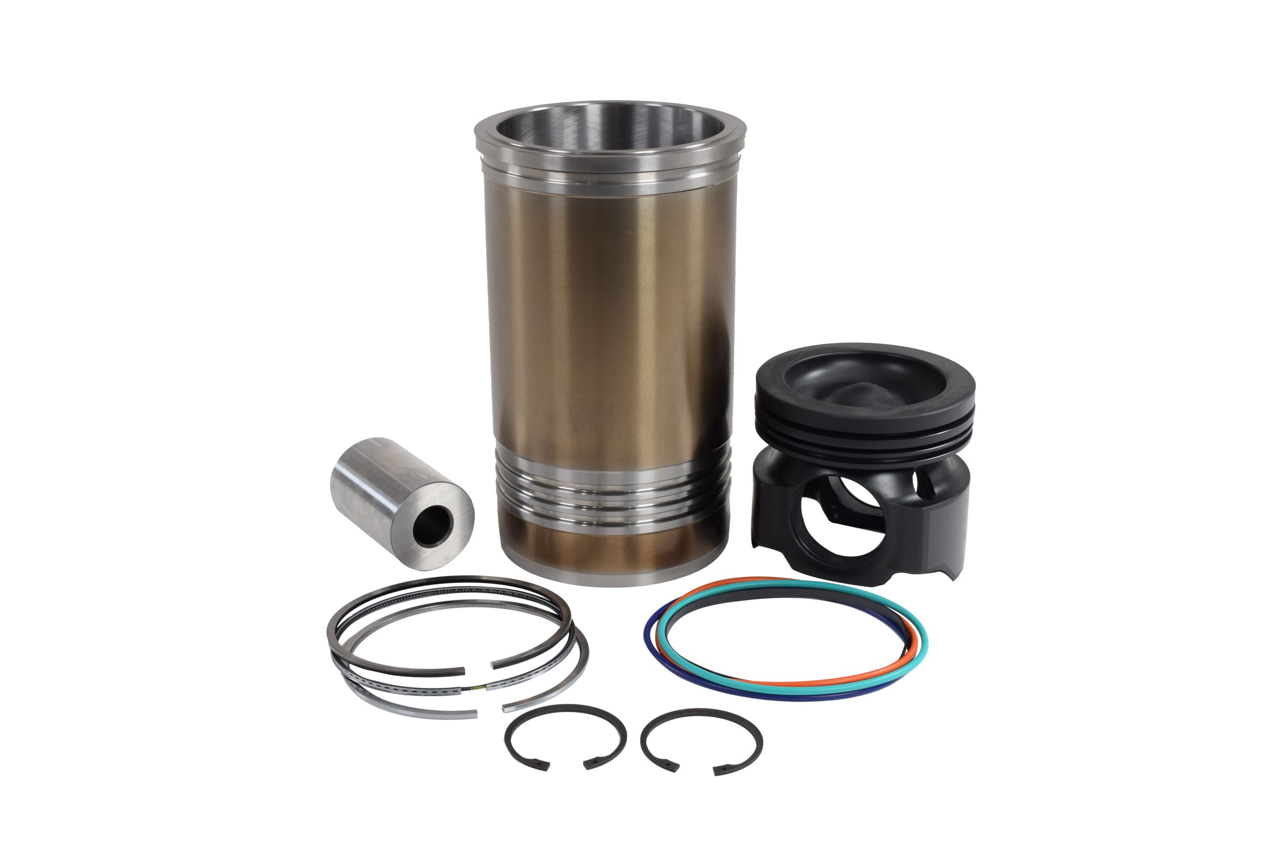 The CK3569946P Caterpillar C15 cylinder kit provides a comprehensive solution for complete cylinder rebuild and restoration, including all essential components manufactured to OEM specifications in ISO 9001:2008 certified facilities to ensure optimal engine performance and reliability. The kit includes a precision-manufactured steel piston body engineered for superior strength and durability under the extreme operating conditions typical of C15 engines in demanding commercial applications. A high-quality piston pin facilitates the critical connection between the piston and connecting rod, providing smooth articulation and reliable load transfer during engine operation while maintaining precise clearances and alignment essential for long-term reliability. Two piston pin retainers secure the piston pin within the piston assembly, preventing pin movement that could cause catastrophic engine damage during operation while ensuring reliable connection throughout extended service intervals. The complete piston ring set includes three distinct rings engineered to specific tolerances and surface treatments: a top piston ring designed for optimal compression sealing and heat transfer, an intermediate piston ring that provides secondary compression sealing and oil control, and an oil piston ring specifically engineered for superior oil control and crankcase pressure management. A precision-honed cylinder liner provides the critical wear surface for piston operation and serves as the foundation for proper cylinder geometry, compression sealing, and optimal surface finish characteristics essential for minimal break-in periods and extended service life. The comprehensive cylinder liner O-ring set includes multiple sealing components designed to prevent coolant leakage and maintain proper cooling system integrity around the cylinder liner installation, ensuring reliable sealing under varying thermal and pressure conditions. This complete kit approach eliminates the need for separate component ordering and ensures perfect compatibility between all included parts, simplifying installation procedures and reducing potential for component mismatch issues that could affect engine performance or reliability. The comprehensive nature of this cylinder kit makes it ideal for major C15 engine overhauls, individual cylinder rebuilds, or preventive maintenance programs where complete cylinder restoration is required to maintain optimal engine performance and achieve the million-mile service life potential that C15 engines are renowned for in commercial applications.